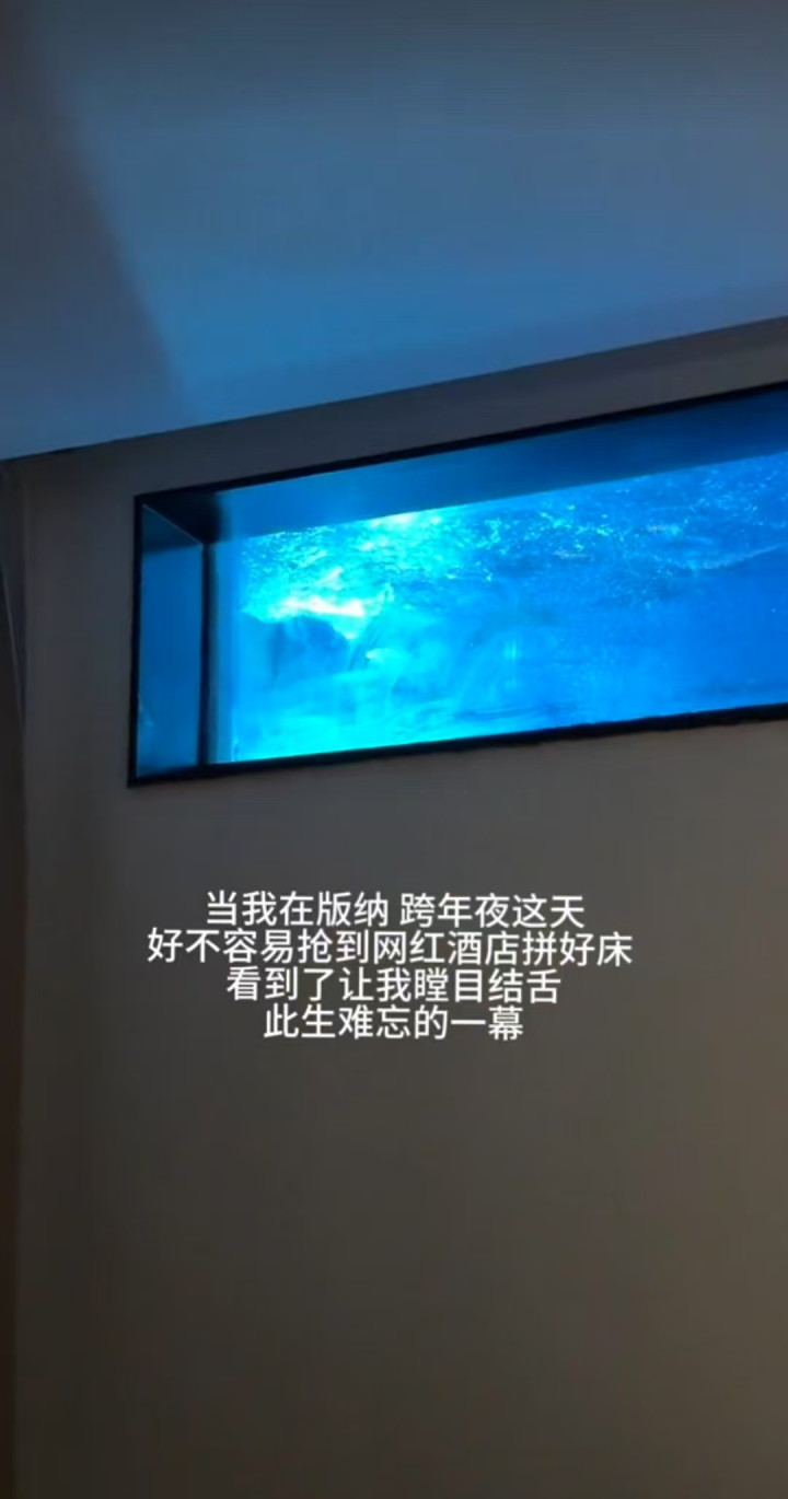 据山东青岛市广播电视台先锋新闻报道,元旦假期,在云南西双版纳,游客谢女士在酒店续住时遇到“满房”,经沟通,酒店为其协调出一间特殊房间。其拍摄的视频显示,拉开房间窗帘后,窗外是酒店泳池,还有一名男子在游泳。